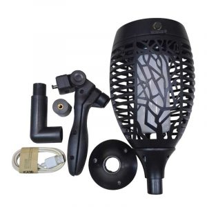 Επαναφορτιζόμενο φωτιστικό κήπου σε μαύρο χρώμα, που φορτίζει με καλώδιο USB για ασύρματη χρήση, με μεγάλη αυτονομία μπαταρίας.