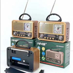 Επαναφορτιζόμενο ραδιόφωνο Retro με ρολόι – NS8898BT – 888988 – Silver