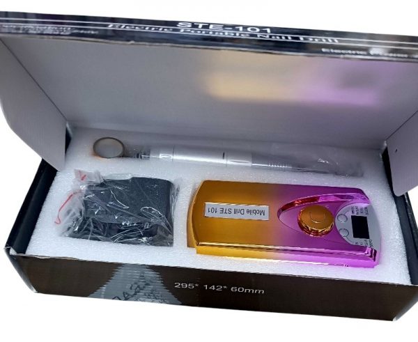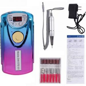 Επαγγελματικός, επαναφορτιζόμενος τροχός μανικιούρ-πεντικιούρ με βάση στήριξης. Διαθέτει ρυθμιζόμενη ταχύτητα, λειτουργία μειωμένου θορύβου και δονήσεων και εργονομικό σχεδιασμό για εύκολη και άνετη χρήση. Χαρακτηριστικά: Ισχύς: 20W Δεξιόστροφη και αριστερόστροφη λειτουργία, Ψηφιακή οθόνη ενδείξεων, Ρυθμιζόμενη ταχύτητα: 1000-30000rpm, Προστασία από υπερθέρμανση, Προστασία από αντίστροφη ενεργοποίηση (καθυστέρηση αλλαγής 2 sec), Αυτονομία μπαταρίας έως 2 ώρες, Περιλαμβάνει: 6 φρέζες και 6 τροχολιθάκια.