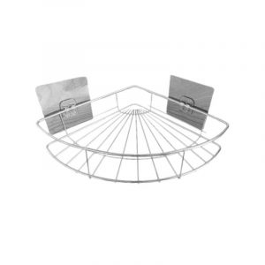 Επιτοίχιο γωνιακό ράφι μπάνιου, μεταλλικό, με κρεμάστρες.