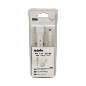 Φορτιστής αναπτήρα αυτοκινήτου με καλώδιο Fast Charge Micro USB και 2 θύρες USB: 1A & 2.1A. Μήκος: 1m. Χρώμα: Λευκό.