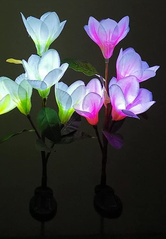 Φωτιζόμενα διακοσμητικά λουλούδια LED με ηλιακό πάνελ φόρτισης και ενσωματωμένη επαναφορτιζόμενη μπαταρία, ιδανικά διακοσμητικά για χρήση σε σημεία που δεν έχουν εύκολη πρόσβαση σε ηλεκτρικό ρεύμα, καθώς τοποθετούνται και χρησιμοποιούνται εξολοκλήρου ασύρματα.