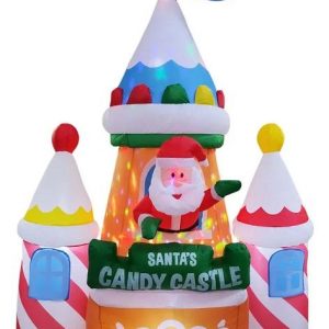 Φουσκωτό, διακοσμητικό Χριστουγεννιάτικο Κάστρο Άγιου Βασίλη με εσωτερικό φωτισμό LED.
