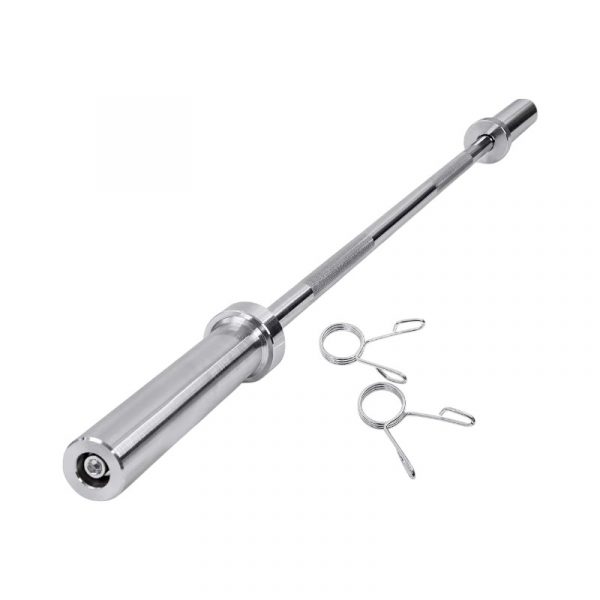 Ίσια μπάρα άρσης βαρών ολυμπιακού τύπου πάχους 25mm και μήκους 1.2m, ατσάλινη, με αντιολισθητικές ραβδώσεις και 2 κολάρα ασφαλείας για τα βάρη.