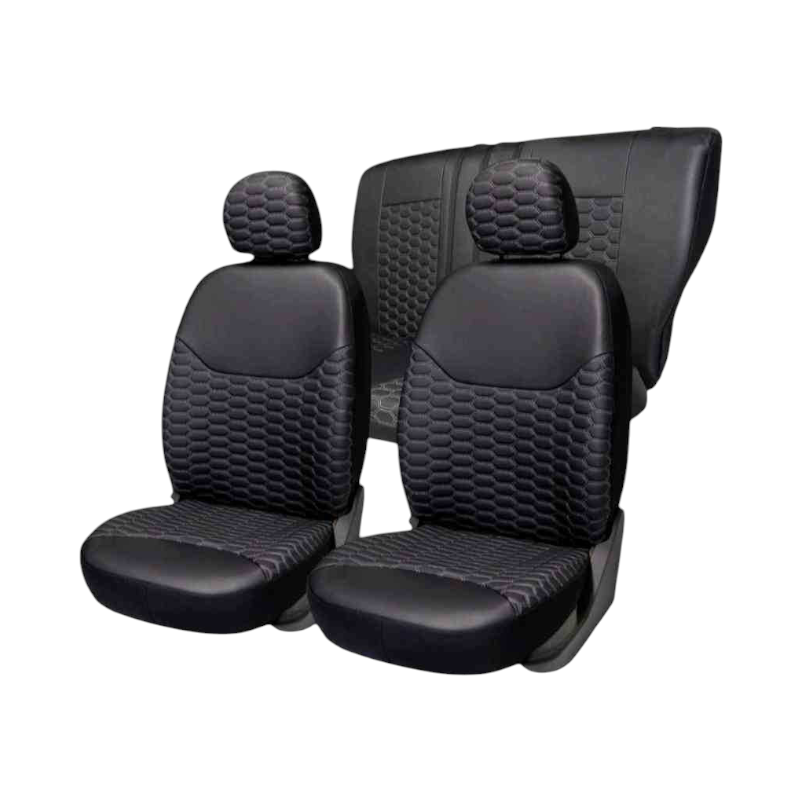 Universal καλύμματα αυτοκινήτου, από υψηλής ποιότητας δερματίνη που τοποθετείται και καθαρίζεται εύκολα. Αποτελείται από υψηλής ανθεκτικότητας υλικά και λεπτό εσωτερικό σφουγγάρι με ειδική ανατομική σχεδίαση. Περιλαμβάνονται 2 καλύμματα για τα 2 μπροστινά καθίσματα, 2 καλύμματα για τα μαξιλάρια κεφαλής και 1 κάλυμμα πίσω καθίσματος. Ευέλικτος και κομψός σχεδιασμός που ταιριάζει σε όλα τα αυτοκίνητα. Υψηλή αντοχή στη φθορά. Εύκολη τοποθέτηση.
