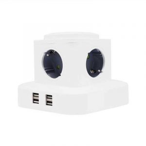Κάθετο πολύπριζο 4 θέσεων, με 4 θύρες USB και πρίζα Σούκο – RC-G4P.