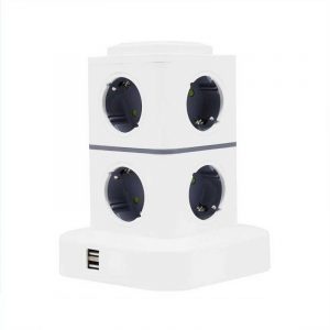 Κάθετο πολύπριζο 8 θέσεων με 2 θύρες USB και πρίζα Σούκο – RC-G8P.