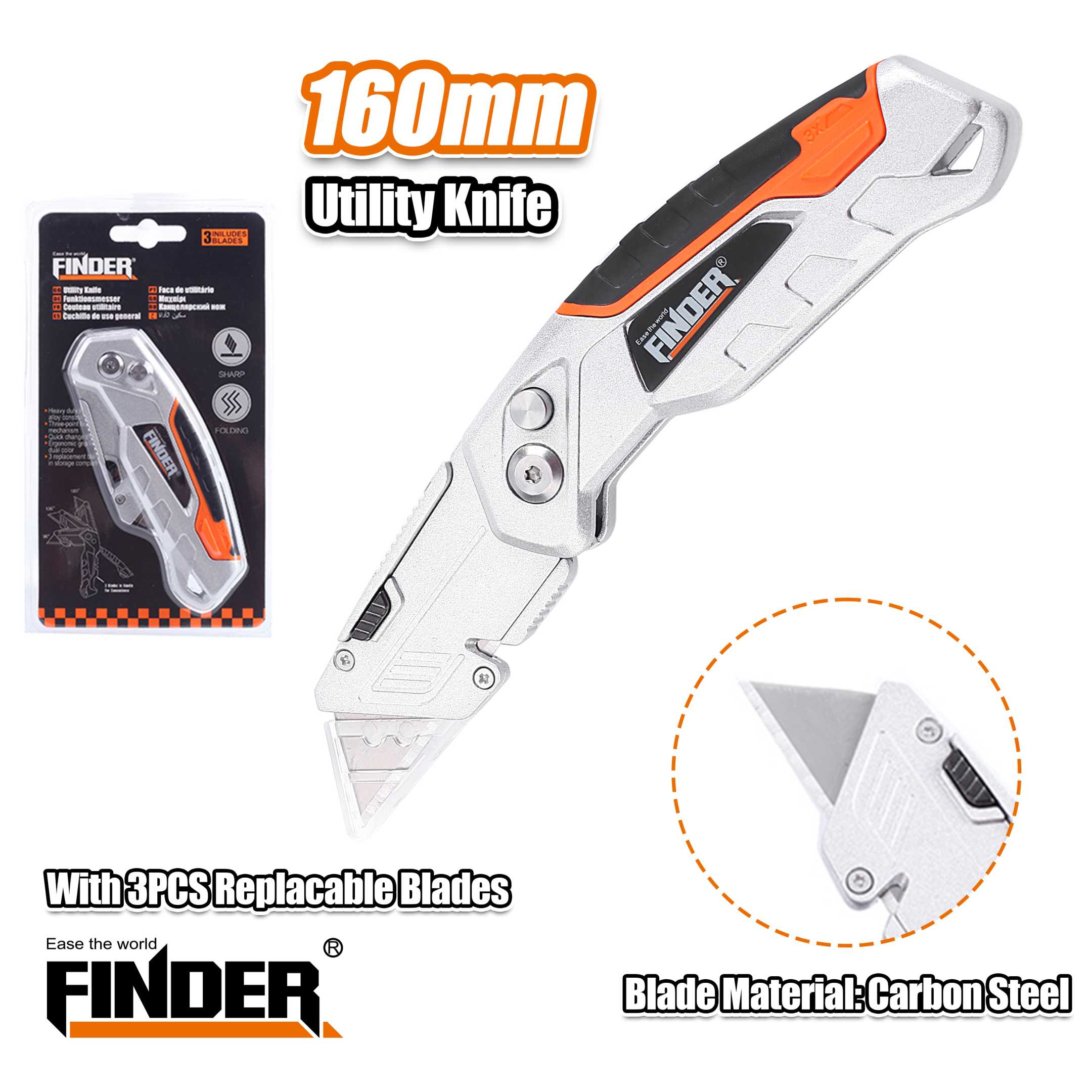 Κοπίδι  3 in 1,  Finder, πτυσσόμενο, με εργονομική λαβή και 3 διαφορετικές λεπίδες από ατσάλι, ενσωματωμένες σε ειδική θήκη πάνω στο κοπίδι.