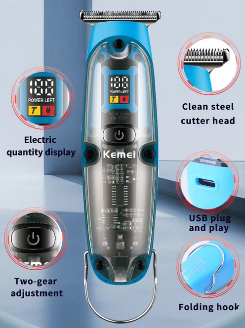 Επαναφορτιζόμενη κουρευτική μηχανή σε εντυπωσιακό διαφανή σχεδιασμό, με λεπίδα ακριβείας από ανοξείδωτο ατσάλι, με μεγάλη αυτονομία μπαταρίας, εργονομικό design και αξεσουάρ, κατάλληλη για κάθε είδους περιποίηση σε μαλλιά, γένια και σώμα.