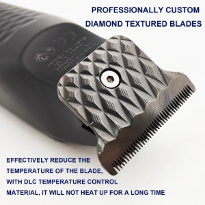 Χαρακτηριστικά: Ισχύς: 5W, Ρυθμιζόμενη λεπίδα 0-1mm, Ταχύτητα 6500RPM, Ψηφιακή οθόνη LED, Επαναφορτιζόμενη μπαταρία λιθίου 1200mah, Χρόνος φόρτισης: 2 ώρες, Χρόνος λειτουργίας: 120 λεπτά, 4 χτενάκια για διαφορετικά μήκη κοπής, Λεπίδα από ανοξείδωτο ατσάλι πλάτους 40mm, Διαστάσεις: 15.5 x 4.5 cm.