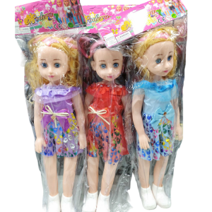 Παιδική κούκλα με μακριά μαλλιά και υπέροχο φόρεμα.