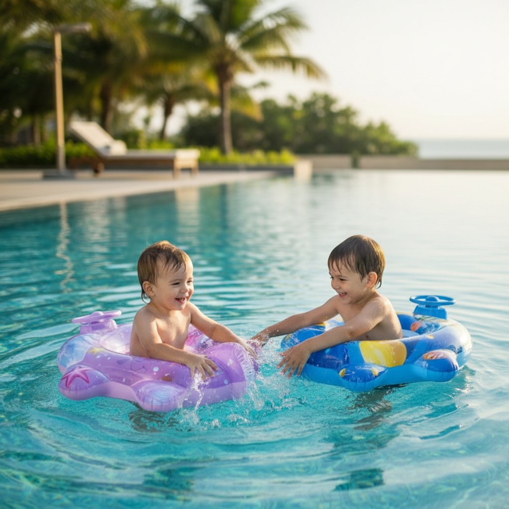 Διασκεδάστε με το μωρό σας στη θάλασσα και κάντε τα πρώτα του βήματα στο νερό να μοιάζουν παιχνίδι! Διαθέτει ασφαλές και σταθερό κάθισμα από μαλακό υλικό PVC που δεν τραυματίζει το δέρμα και προστατευτική φουσκωτή τέντα. Με χειρολαβές κρατήματος. Άνετο και εύκολο στη χρήση. Υλικό: Ανθεκτικό, μη τοξικό PVC Ηλικίες: 3+ Αντοχή: έως 20KG