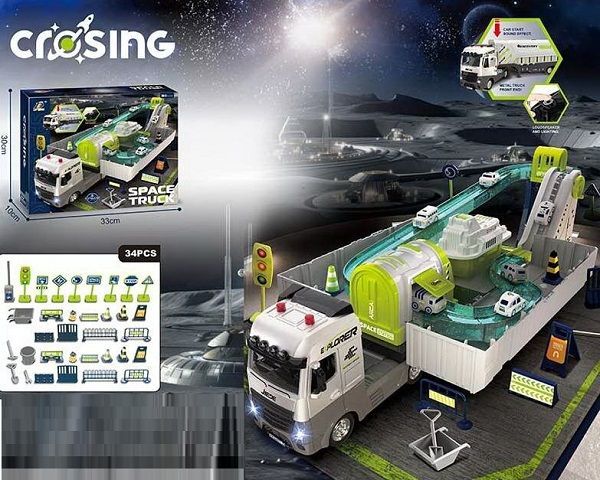Όχημα φορτηγό που μετατρέπεται σε διπλή πίστα αυτοκινητόδρομο, με αξεσουάρ.