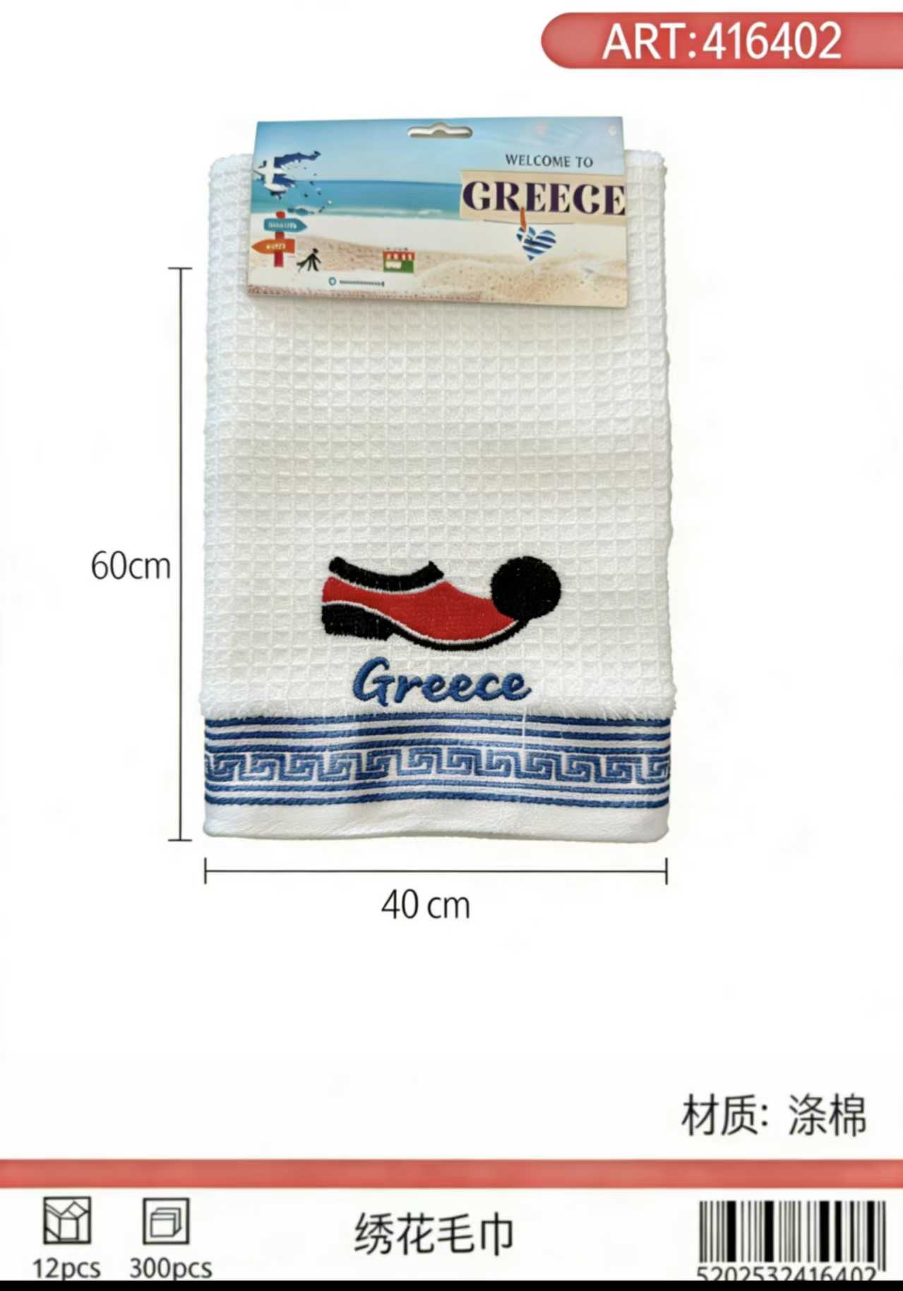 Πετσέτα ποτηρόπανο Souvenir με κέντημα – Σετ 12pcs – Greece – 416402
