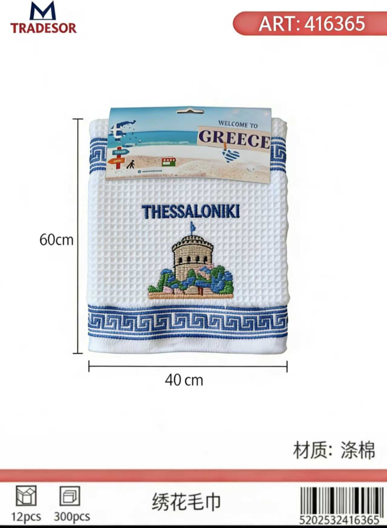 Πετσέτα ποτηρόπανο Souvenir με κέντημα – Σετ 12pcs – Thessaloniki – 416365