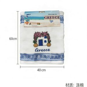 Σετ πετσέτα-ποτηρόπανο Souvenir, 12 τεμάχια, με υπέροχα κεντημένα θεματικά σχέδια που αντιπροσωπεύουν την Ελλάδα, εξαιρετικά μαλακή και απορροφητική, ιδανική ως αναμνηστικό ταξιδιού ή δώρο.