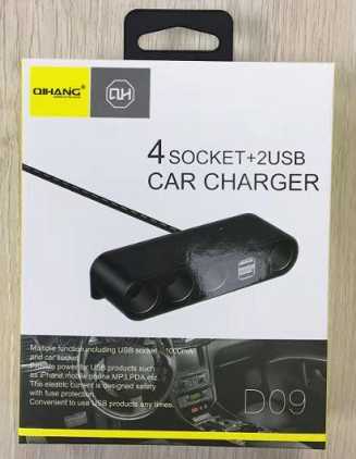 D09-4 Socket + 2 USB Car Charger