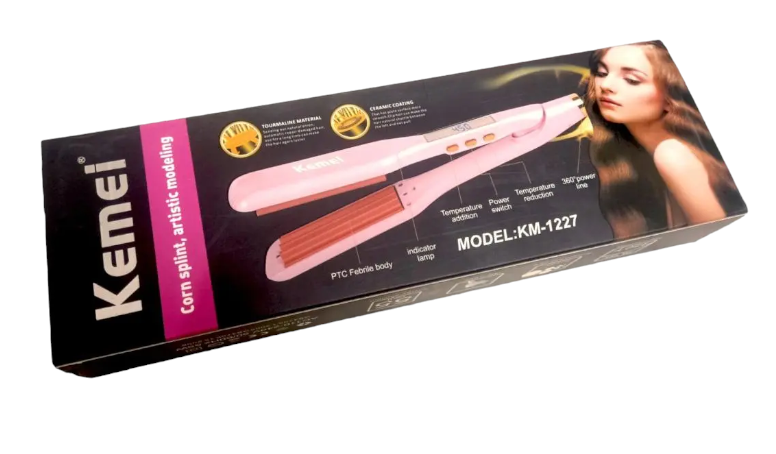 Πρέσα μαλλιών – Multistyler της Kemei για πανεύκολο σγουρό Look χάρη στις πρωτοποριακές πλάκες που διαθέτει για εφέ “τοστ”. Δημιουργεί το χτένισμα σας με μία κίνηση καθώς η θερμότητα διαχέεται ομοιόμορφα χωρίς να καταστρέφει τα μαλλιά. Οι κεραμικές μεγάλες πλάκες της, πλάτους 5cm, διαθέτουν ειδική επίστρωση τουρμαλίνης που προστατεύει τα μαλλιά απ τη θερμότητα και προσφέρει ένα λείο και λαμπερό αποτέλεσμα.