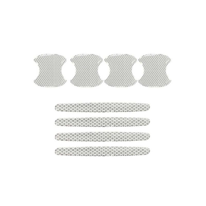Προστατευτικό αυτοκόλλητο χερουλιού πόρτας αυτοκινήτου που προστατεύει εύκολα και αποτελεσματτικά τη περιοχή του χερουλιού από τις γρατσουνιές ενώ λειτουργεί και ως διακοσμητικό. Ισχυρό αυτοκόλλητο για σταθερή τοποθέτηση και ανθεκτικότητα στη χρήση και στο πλύσιμο. Σετ 4 τεμάχια.