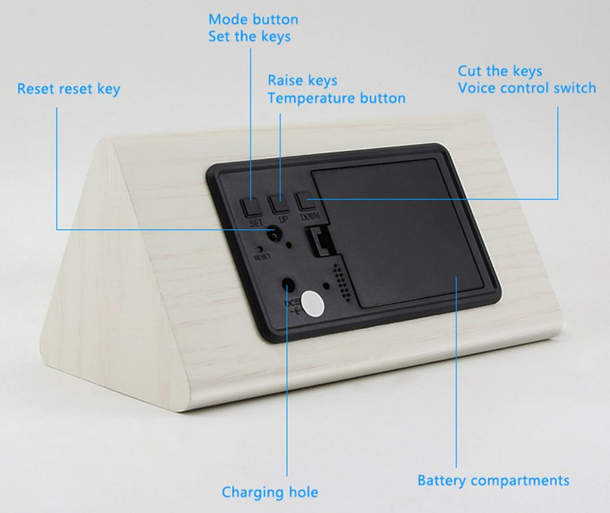 Ψηφιακό ρολόι–Ξυπνητήρι LED, σε ιδιαίτερο σχεδιασμό με εφέ ξύλου. Πρακτικό μέγεθος που μπορεί να τοποθετηθεί παντού και να προσδώσει σύγχρονη νότα στο χώρο σας.