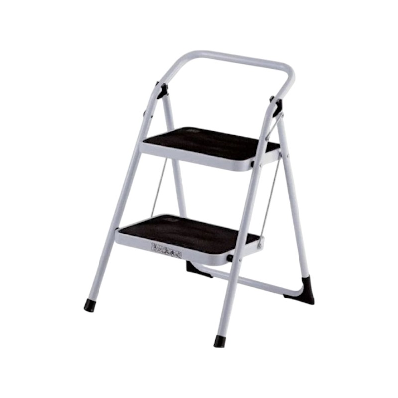 Πτυσσόμενη σκάλα 2 σκαλιών, με στιβαρή σιδερένια κατασκευή, και εύκολη αποθήκευση.