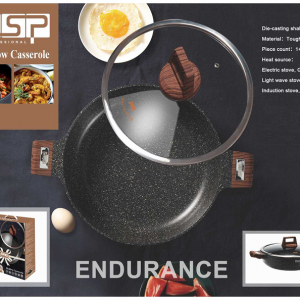 Ρηχή κατσαρόλα υψηλής ποιότητας κατασκευής από την DSP, με ισχυρή αντικολλητική επίστρωση και γυάλινο καπάκι.