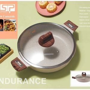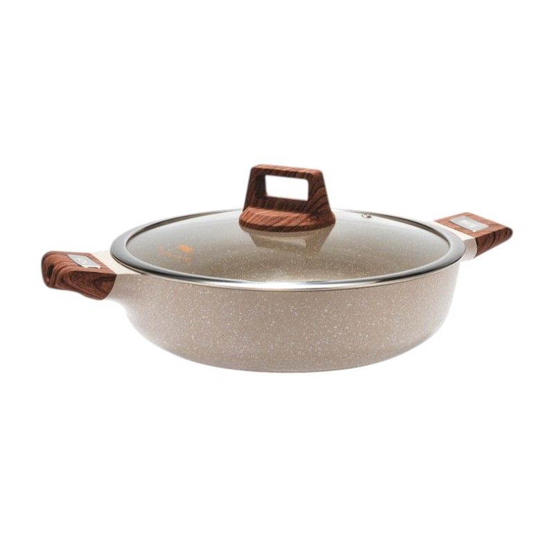 Ρηχή κατσαρόλα υψηλής ποιότητας κατασκευής από την DSP, με ισχυρή αντικολλητική επίστρωση και γυάλινο καπάκι.