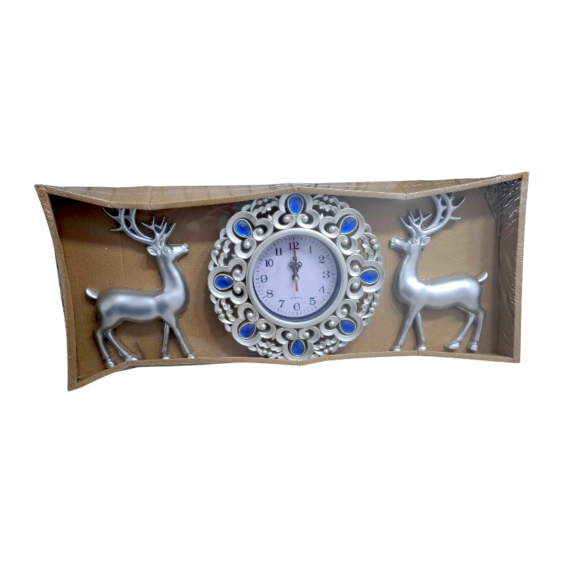 Ρολόι τοίχου με διακοσμητικά ελάφια – 3pcs – 909-5 – 390950 – Silver