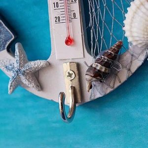 Χειροποίητο, διακοσμητικό Souvenir, επιτοίχιο με μεταλλική κρεμάστρα ρούχων και θερμόμετρο.