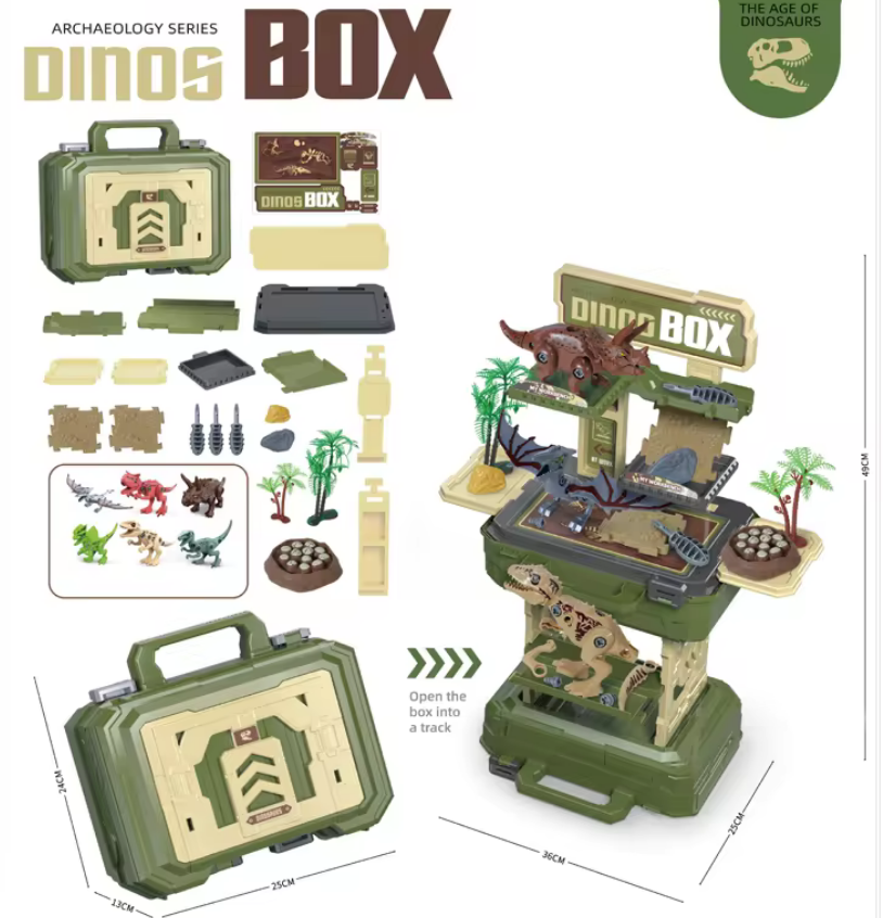 Σετ παιχνίδι πάρκο Δεινοσαύρων σε υπέροχο σχεδιασμό με πολλά αξεσουάρ, σε πρακτικό βαλιτσάκι μεταφοράς που μετατρέπεται πανεύκολα σε πάγκο παιχνιδιού.
