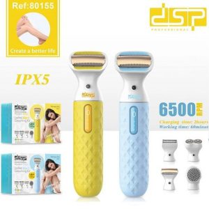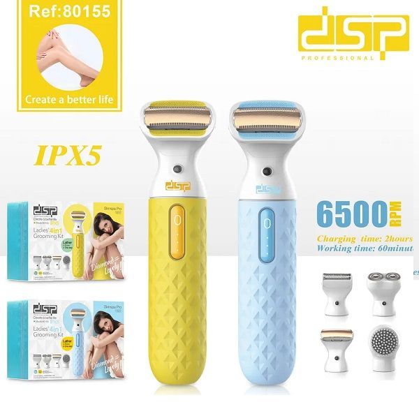 Πλήρες σετ ξυρίσματος περιποίησης και καθαρισμού σώματος και προσώπου 4 σε 1 από την DSP. Πρωτοποριακός σχεδιασμός που θα μετατρέψει τη δύσκολη διαδικασία αποτρίχωσης σε πραγματικά εύκολη και διασκεδαστική! Με νέο εργονομικό σχεδιασμό για να φτάνει σε κάθε σημείο του σώματος με άνεση. 3 διαφορετικές κεφαλές ιδανικές για ξύρισμα σε πρόσωπο, σώμα και δυσπρόσιτες περιοχές και 1 κεφαλή περιστρεφόμενης βούρτσας για βαθύ καθαρισμό και απολέπιση προσώπου και σώματος. Περιποιηθείτε κάθε περιοχή του σώματός σας με μια μόνο συσκευή και γλιτώστε χρόνο, κόπο και χρήματα. Είναι ασύρματη και επαναφορτιζόμενη, για πανεύκολη χρήση και μεταφορά οπουδήποτε.
