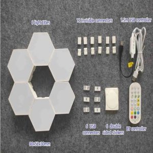Καλώδιο τροφοδοσίας USB, 6 κονέκτρορες USB, 12 πλαστικά συνδετικά, 6 αυτοκόλλητα διπλής όψης για επιτοίχια τοποθέτηση, τηλεχειριστήριο.