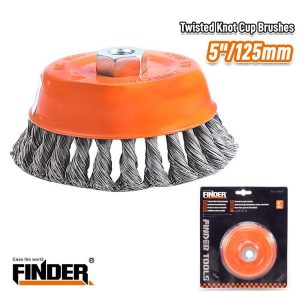 Συρματόβουρτσα καμπάνα στριφτή για γωνιακό τροχό – 5″/125mm – Finder – 196598