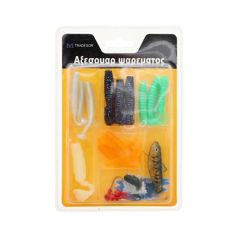 Σετ ποικιλία από τεχνητά δολώματα σε διάφορα χρώματα και σχέδια, με ρεαλιστικό σχεδιασμό και απόλυτα φυσική κίνηση, κατασκευασμένα από σιλικόνη.
