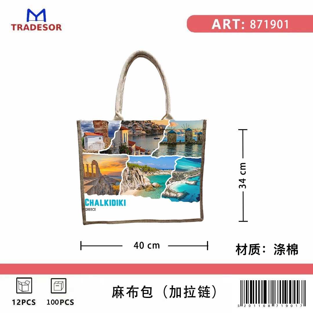 Τουριστική τσάντα λινή με φερμουάρ – Chalkidiki – 40*34*19cm – 871901