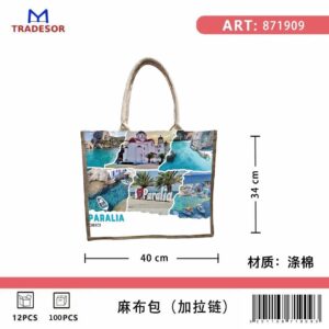 Τουριστική τσάντα λινή με φερμουάρ – Paralia – 40*34*19cm – 871909