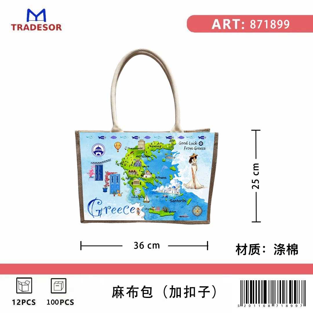 Τουριστική τσάντα λινή με κουμπί – Greece – 36*25*16cm – 871899