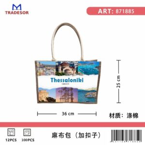 Τουριστική τσάντα λινή με κουμπί – Thessaloniki – 36*25*16cm – 871885