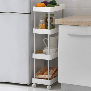 Τροχήλατη ραφιέρα πλαστική 4 επιπέδων με πρακτικό σχεδιασμό, ιδανική για την κουζίνα ή το μπάνιο σας.