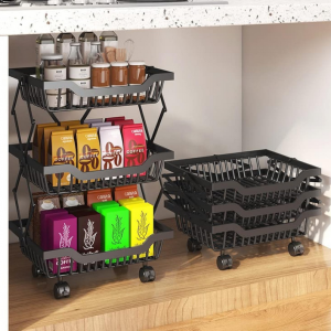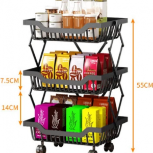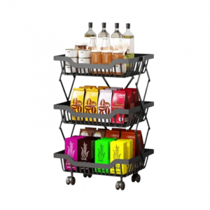Μεταλλική ραφιέρα τριώροφη, με ρόδες για εύκολη μετακίνηση. Πτυσσόμενη για να μην καταλαμβάνει χώρο όταν δεν χρησιμοποιείται, με εργονομικό σχεδιασμό για εύκολη καθημερινή χρήση.