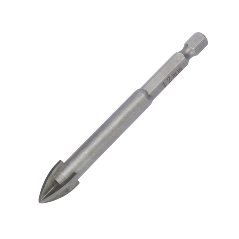 Τρυπάνι τετράκοπο γυαλιού και πλακιδίων της Finder, κατασκευασμένο από ατσάλι #45 Carbon Steel. Μέγεθος: 12mm.