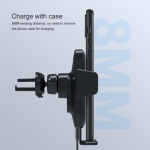 Βάση ασύρματης φόρτισης και στήριξης smartphone αυτοκινήτου με ειδικό κλιπ-μανταλάκι που πιάνεται στις περσίδες του κλιματιστικού αυτοκινήτου σας, με σταθερη εφαρμογή. Παρέχει ασύρματη φόρτιση στη συσκευή σας μέσω της εισόδου USB που διαθέτει και καλωδίου (περιλαμβάνεται) που συνδέεται με τον αναπτήρα αυτοκινήτου σας. Γρήγορη φόρτιση 15W με αυτόματη ενεργοποίηση ανίχνευσης – Qi Auto Smart Sensor.
