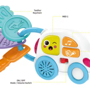 Βρεφικό παιχνίδι αυτοκίνητο μπρελόκ με πλήκτρα ήχων και 3 κλειδάκια-teether με μαλακή μη τοξική επικάλυψη ιδανικά για μασητικό παιχνίδι.