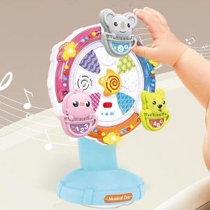 Βρεφικό περιστρεφόμενο παιχνίδι με ζωάκια και ήχους. Διαθέτει περιστρεφόμενη ρόδα με περιστρεφόμενα ζωάκια, πολύχρωμες μπίλιες που κινούνται και πλήκτρα πολλαπλών ήχων. Διαθέτει επίσης βεντούζα για σταθερή τοποθέτηση σε επιφάνεια.