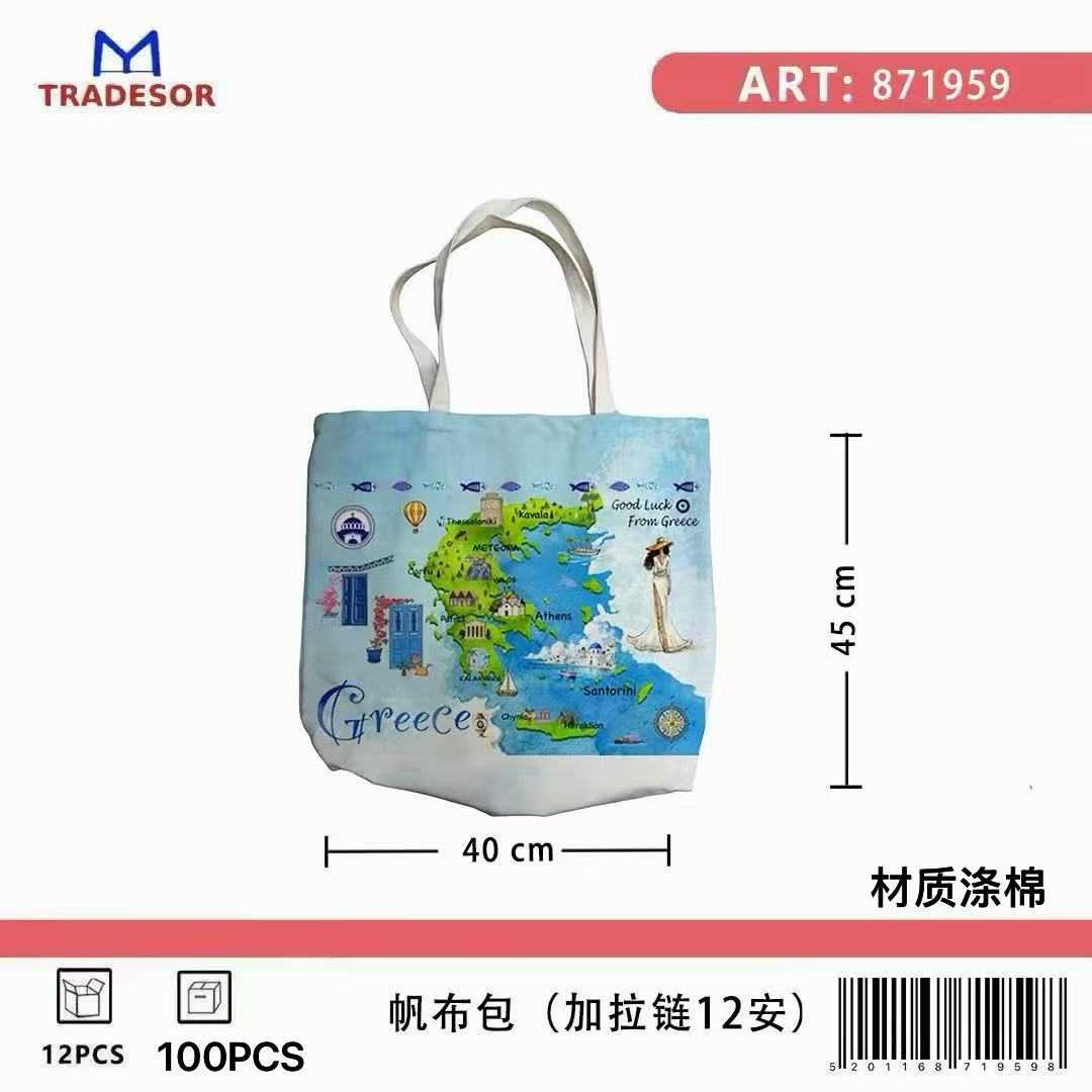 Υφασμάτινη τουριστική τσάντα καμβάς με φερμουάρ – Greece – 45*40*10cm – 871959