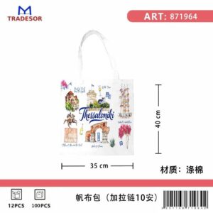 Υφασμάτινη τουριστική τσάντα καμβάς με φερμουάρ – Thessaloniki – 35*40cm – 871964