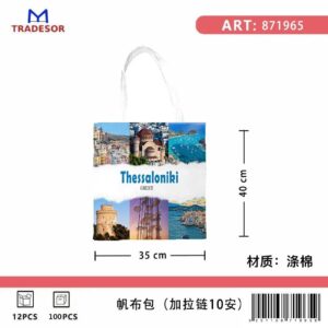 Υφασμάτινη τουριστική τσάντα καμβάς με φερμουάρ – Thessaloniki – 35*40cm – 871965