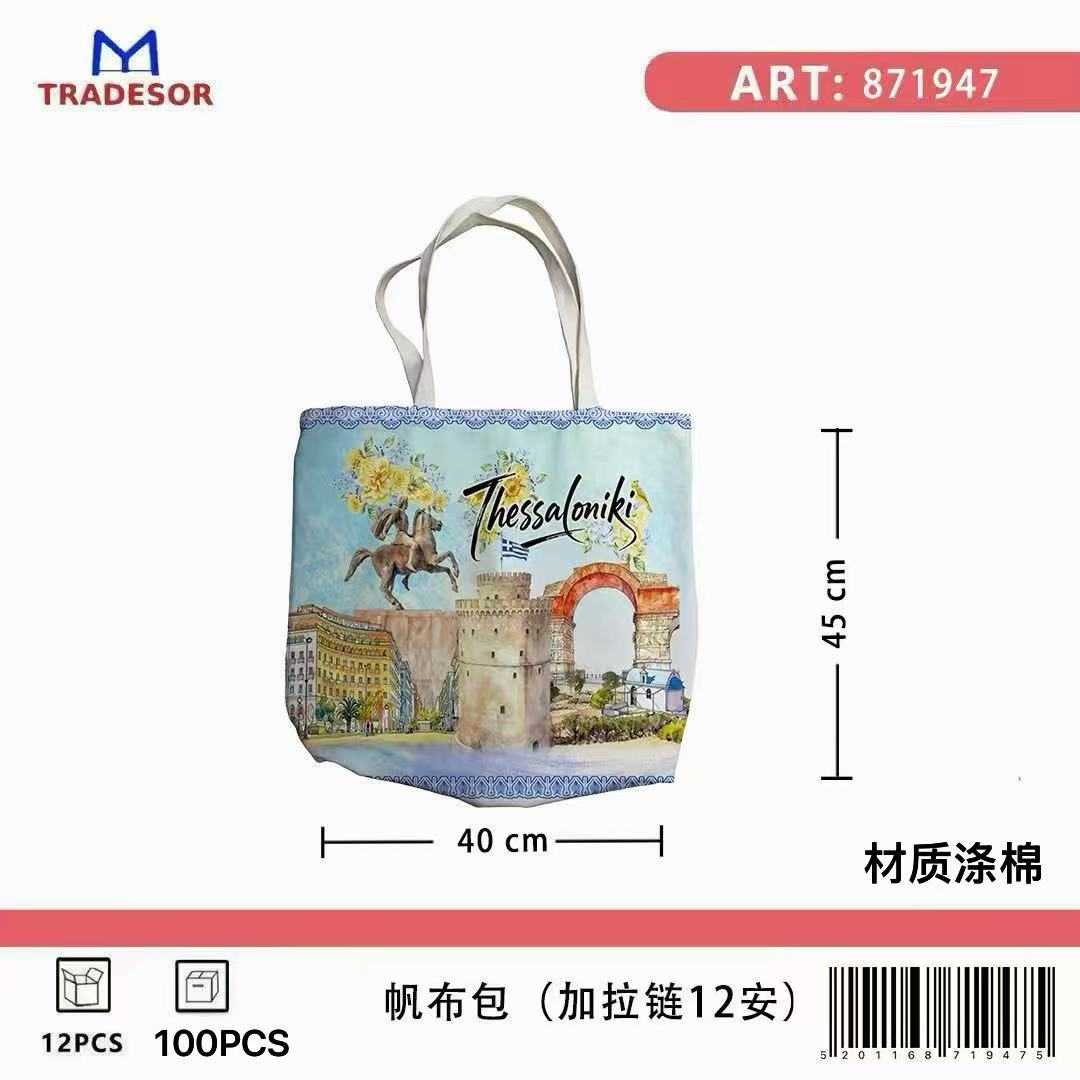 Υφασμάτινη τουριστική τσάντα καμβάς με φερμουάρ – Thessaloniki – 45*40*10cm – 871946